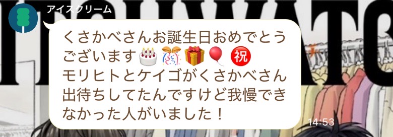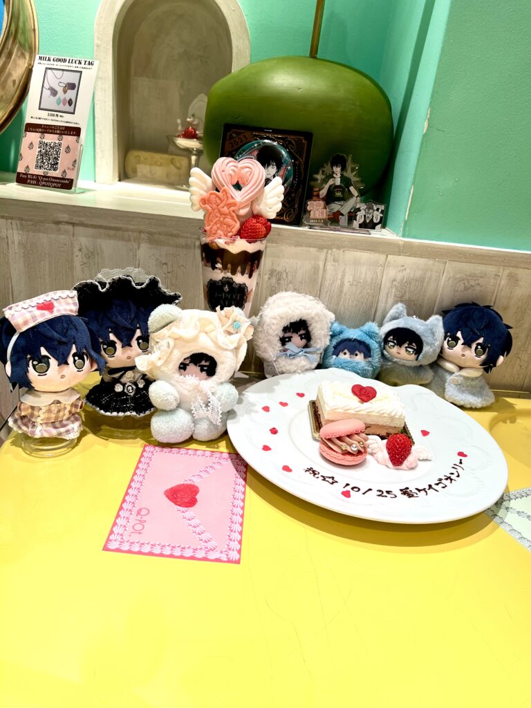 表参道のQ-potカフェです。予約するとメッセージプレートを付けられるらしいので、せっかくだからと受ケイゴオンリーを祝いました。