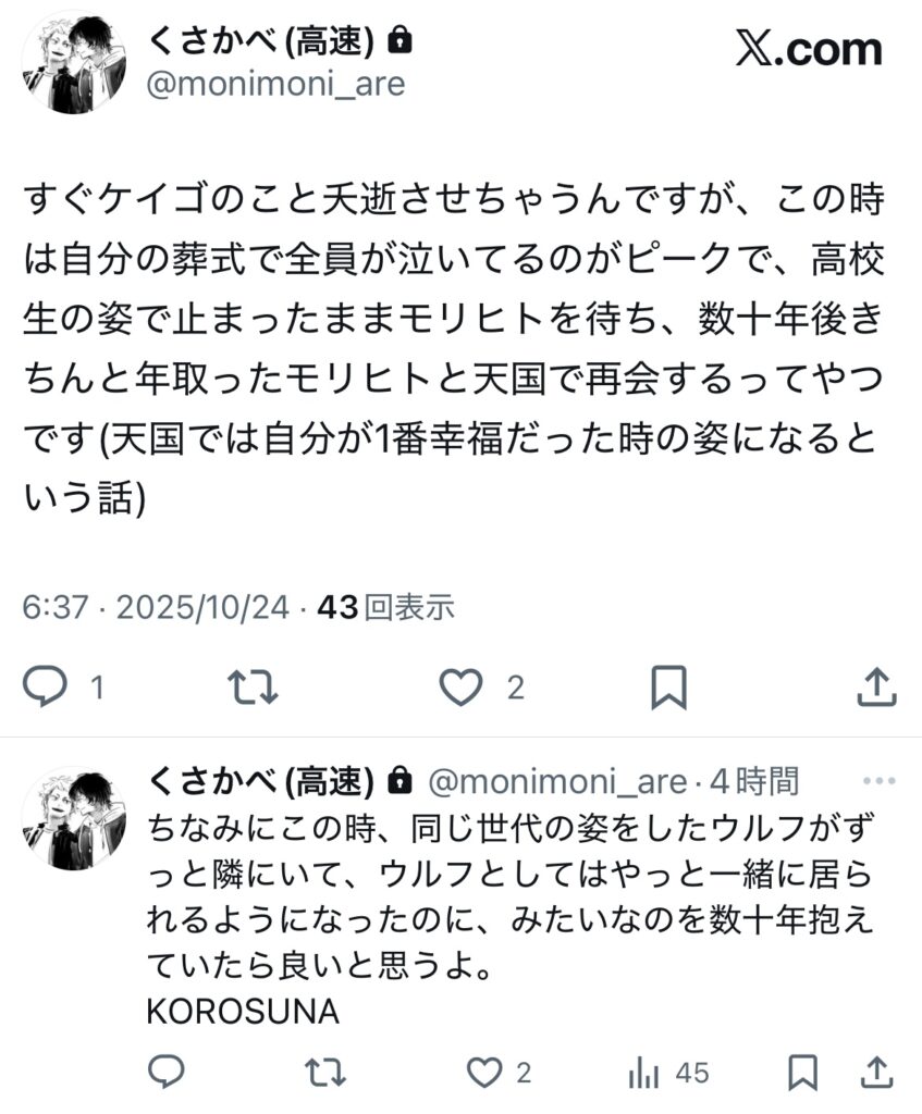 基本的に私は誰に対しても平等に雑食に対してキレ散らかすので、今回も例に漏れずキレていたのですが、笑って受け入れて頂けて良かったです。笑ってるんじゃないよ、こちとら命懸けなんだよ(非実在青少年を勝手につがわせてまぐあわせた上で性器の挿入方向について命を懸けるのやめた方がいいよ)