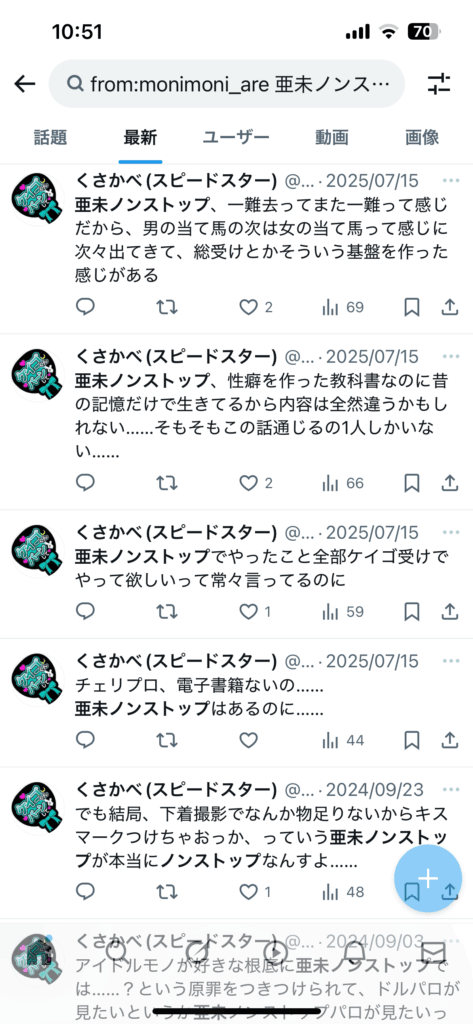 最近の話しかないが、亜未ノンストップの話自体は2021年くらいからしていて、その時は記憶が曖昧だから亜未の字を間違えていたんだと思う。